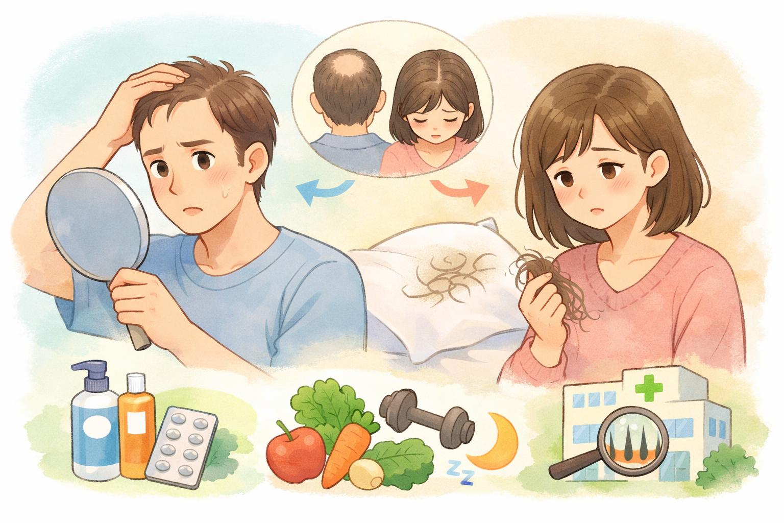 AGAのような遺伝的・ホルモン的な要因だけでなく、日々の生活習慣も頭皮環境や髪の健康に大きな影響を与えます。特に「食事」「睡眠」「ストレス」は、薄毛を助長する三大要因とも言えるでしょう。これらは男女共通の原因であり、AGAの進行を早めてしまう可能性もあります。